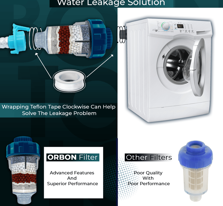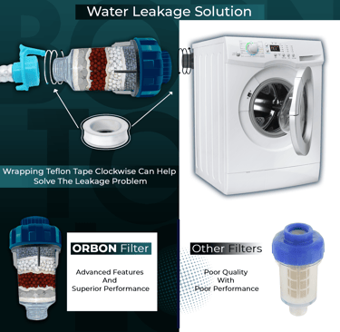 Water leakage is often caused by poor threading and improper sealing. The ORBON Washing Machine Filter is engineered with precision threads and includes free Teflon tape to ensure a tight, secure fit. When installed correctly, it helps prevent leaks, protects your appliance, and delivers reliable performance—unlike ordinary filters that compromise on build quality and sealing.