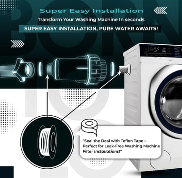 Upgrading your washing machine is effortless with the ORBON Filter. Simply wrap the included Teflon tape around the inlet thread, connect the filter, and tighten—no tools or technical skills required. This simple step ensures a secure, leak-free seal while allowing clean, conditioned water to flow smoothly into your machine for better washing results every time.